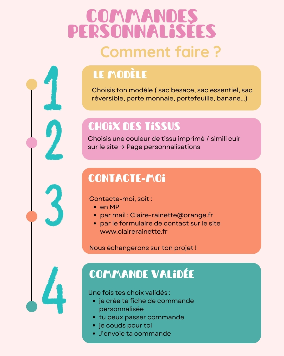 ♥ 4ème étape : une fois votre commande passée et validée, je vous envoie un e-mail au moment où je commence la confection !