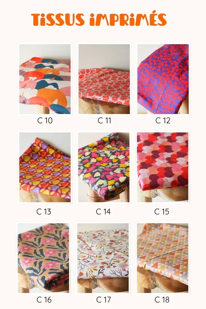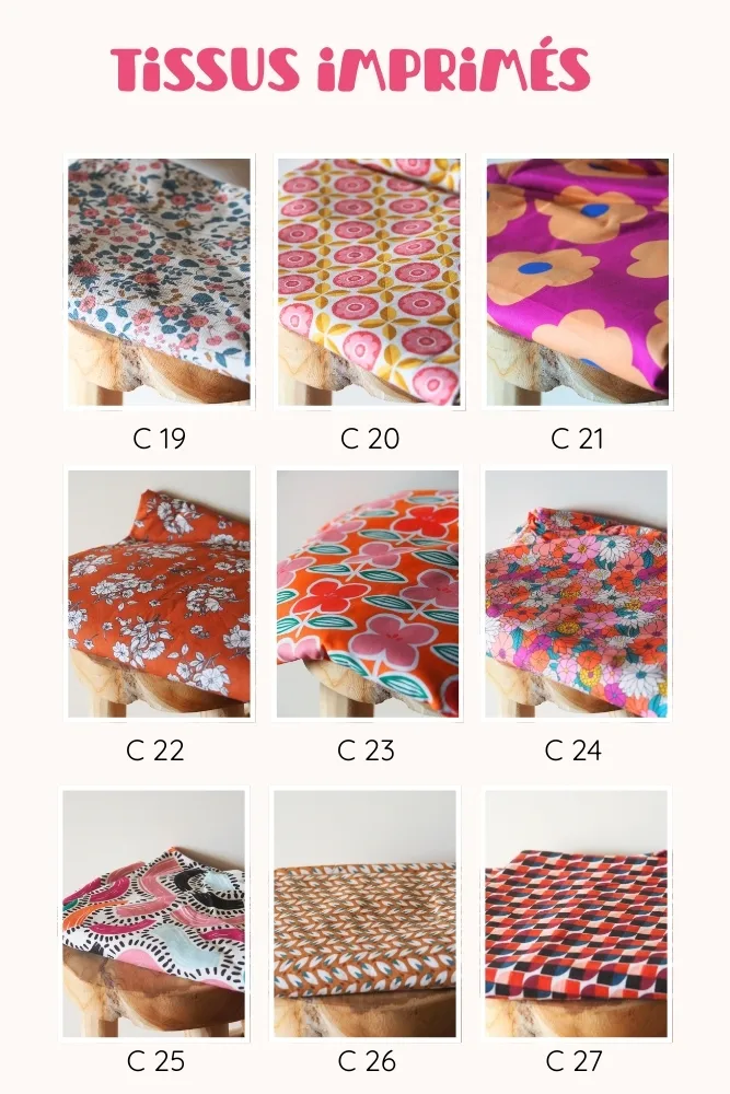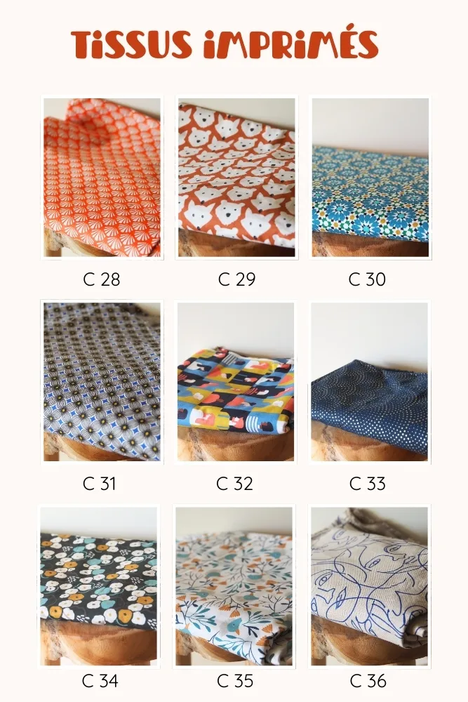 ♥ 2ème étape : le choix des tissus (un imprimé et un coloris de simili cuir) dans la bibliothèque de tissus
