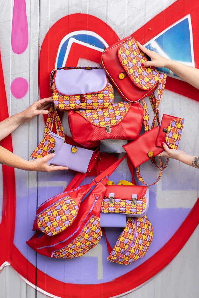 Sac besace Tulipop – sac bandoulière femme fait main coloré en simili cuir rouge et tissu fleuri rétro