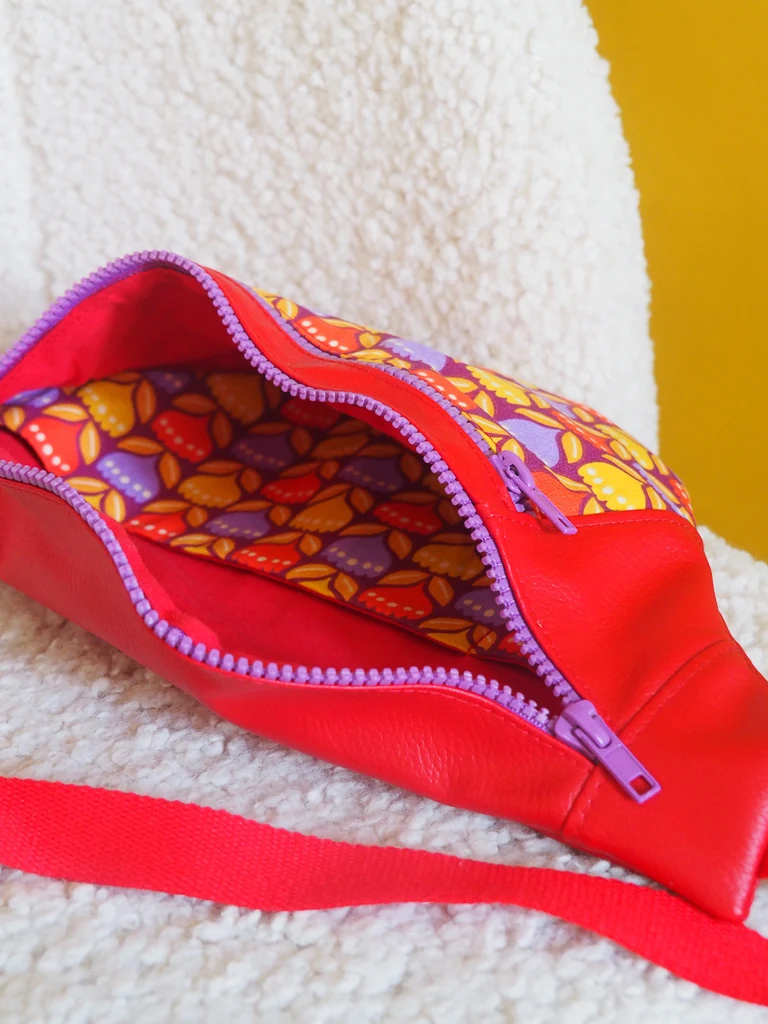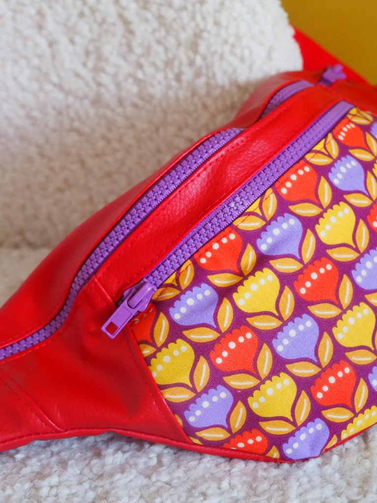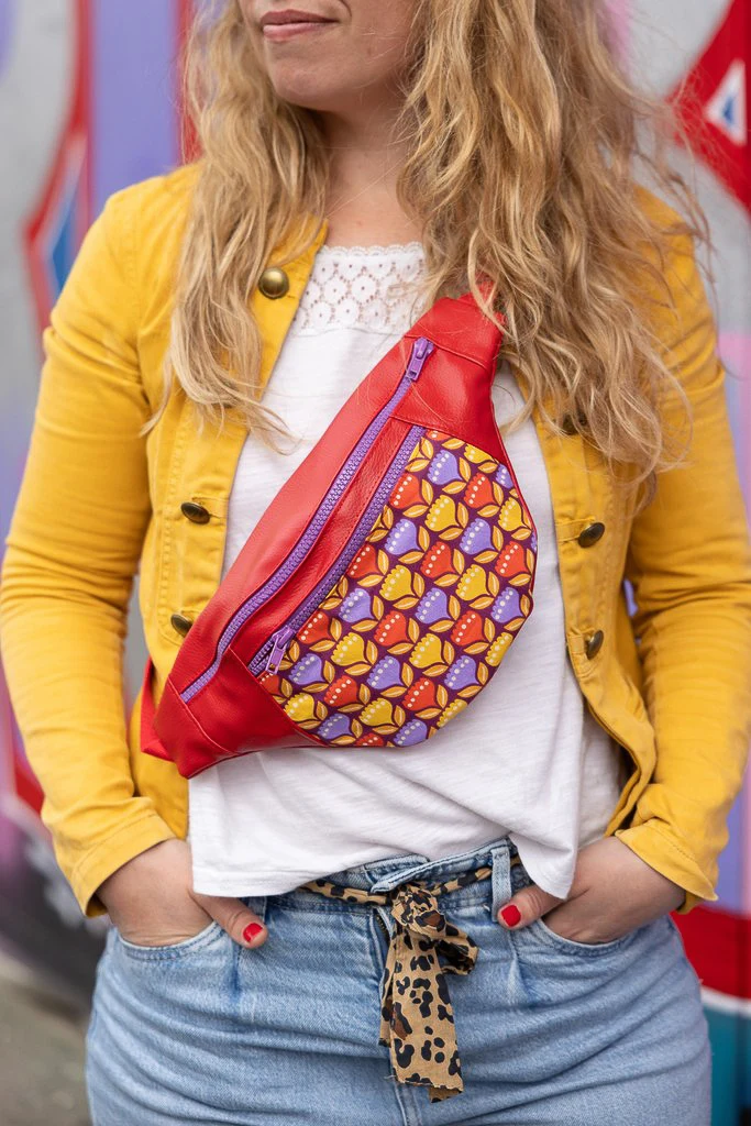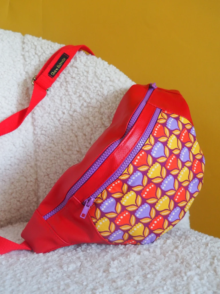 Banane Originale Tulipop – banane femme fait main en simili cuir rouge et tissu fleuri rétro