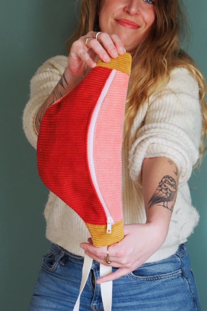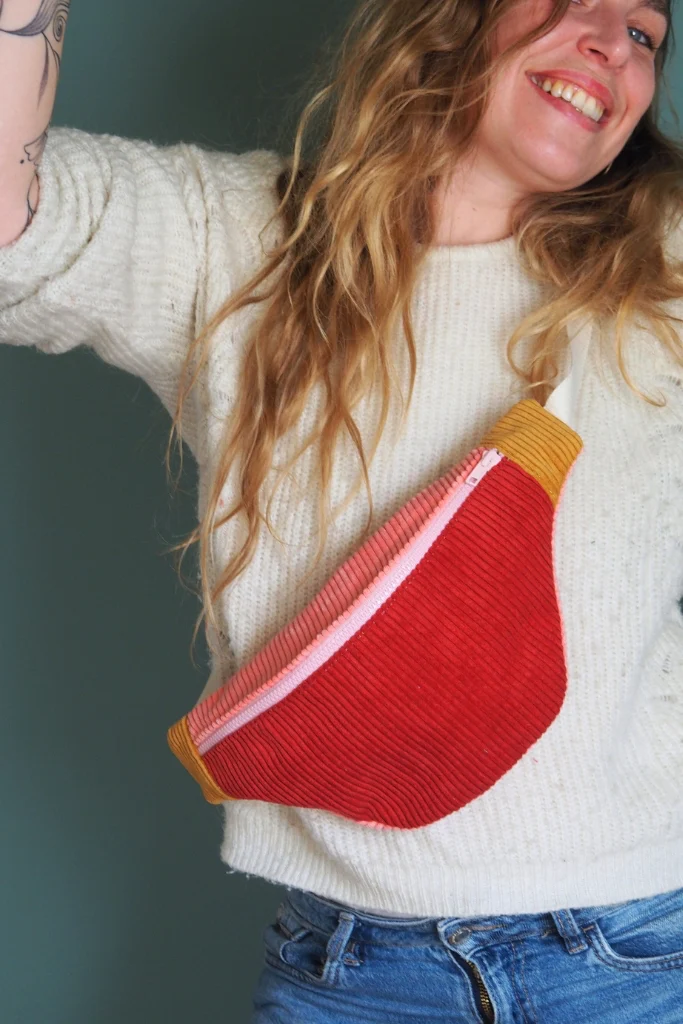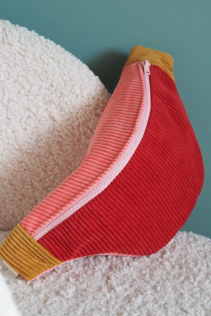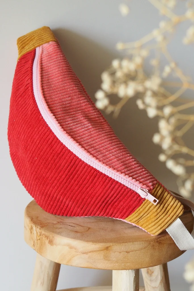 La banane velours Grenadine est une pièce unique cousue main dans mon atelier en Bretagne.