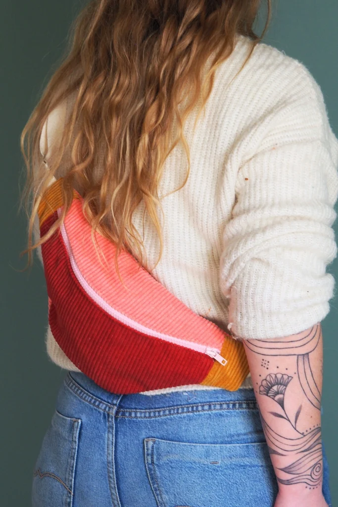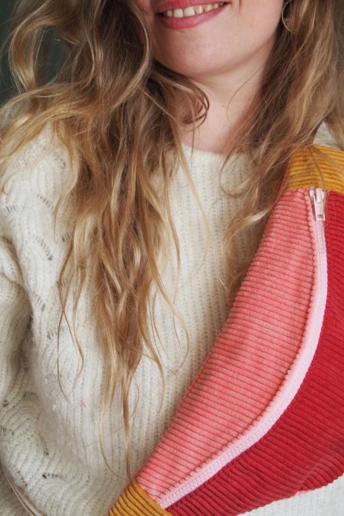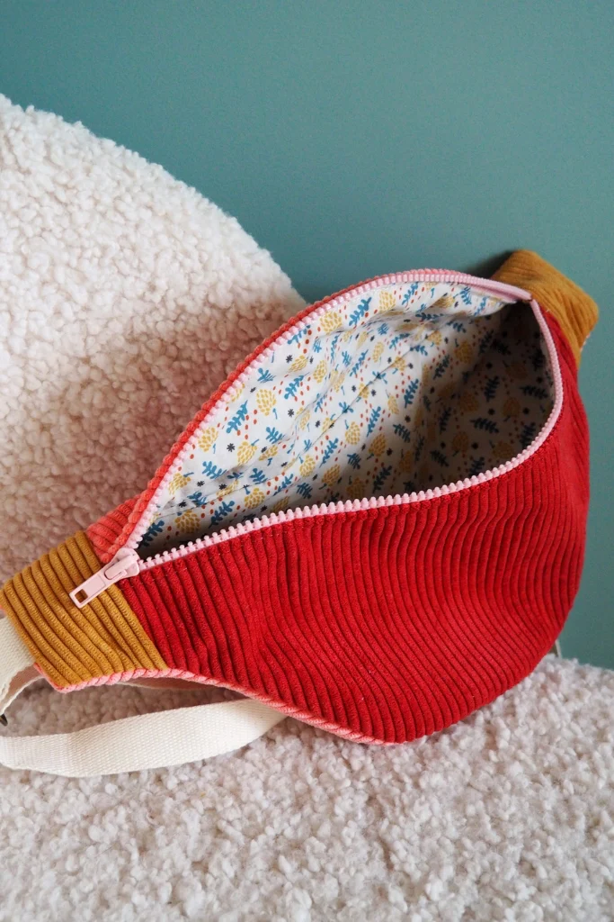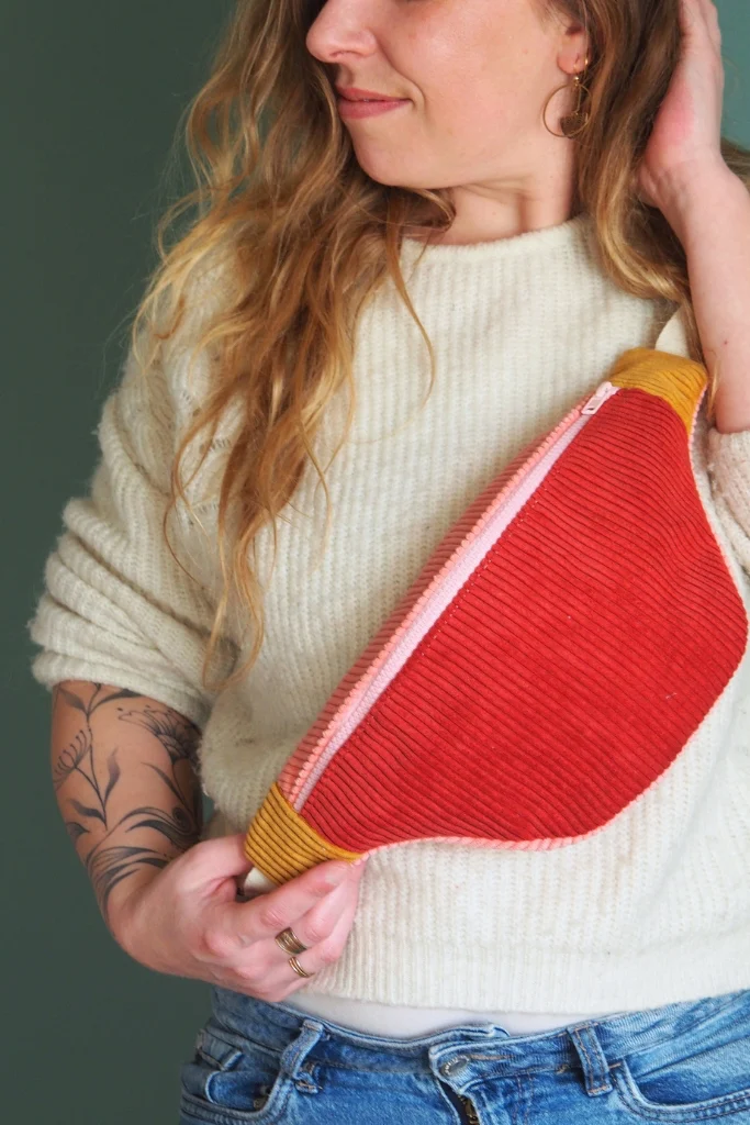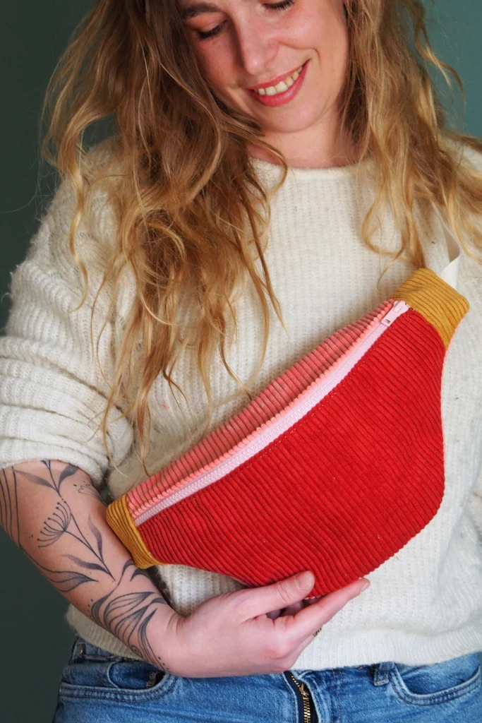 La banane velours Grenadine est une pièce unique cousue main dans mon atelier en Bretagne.