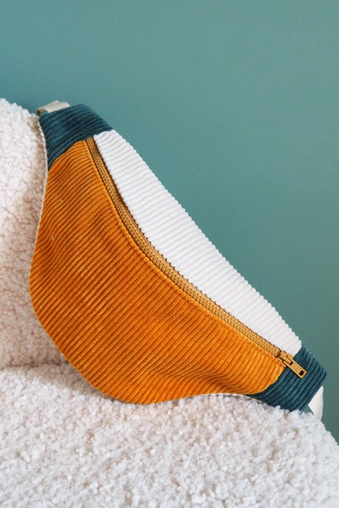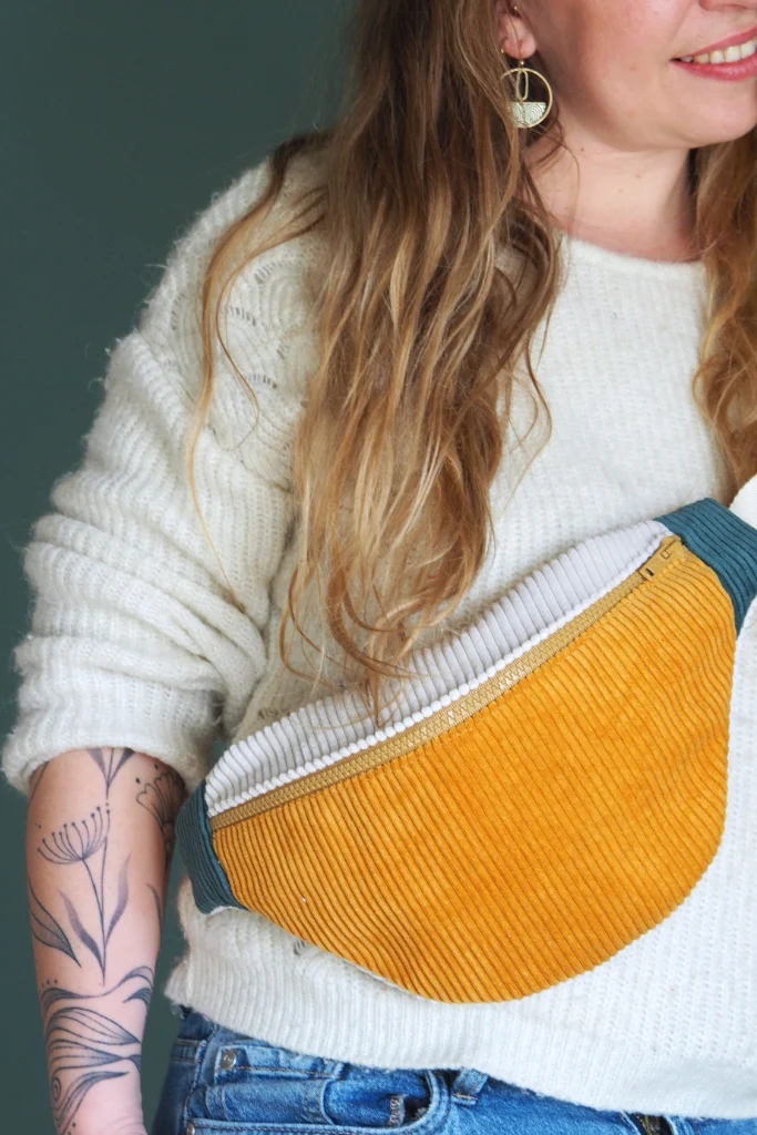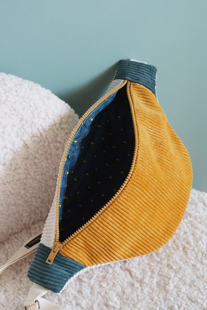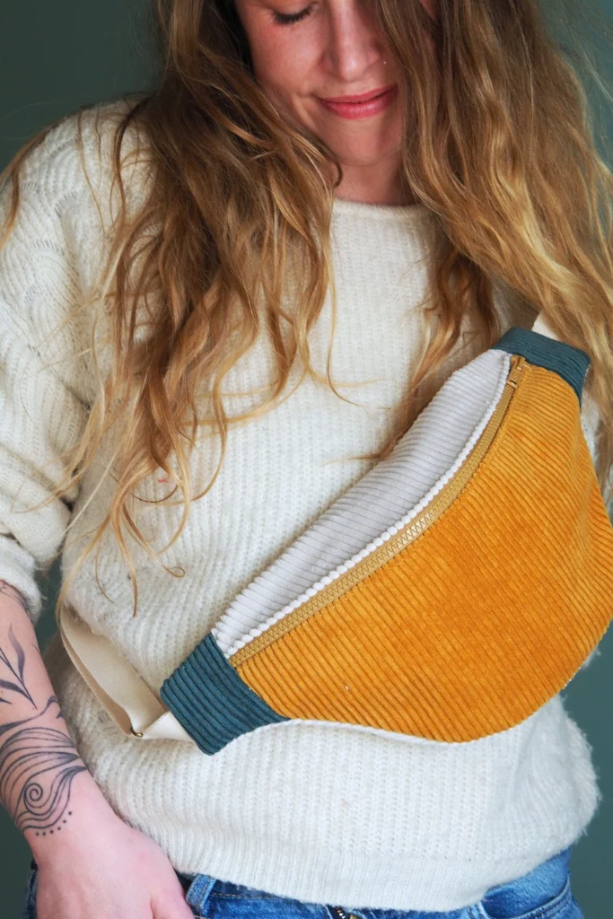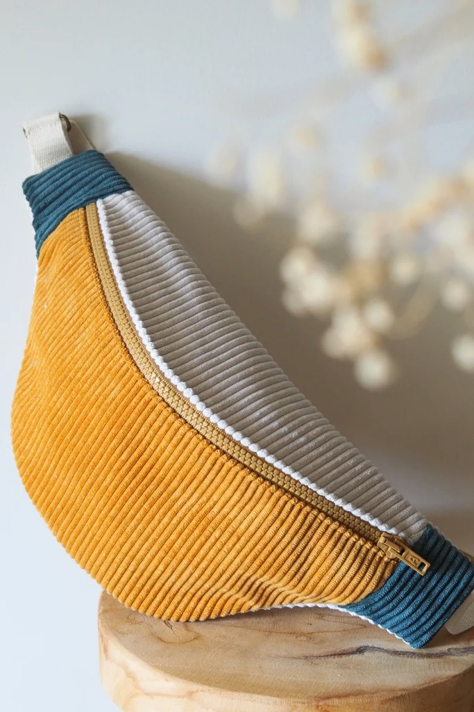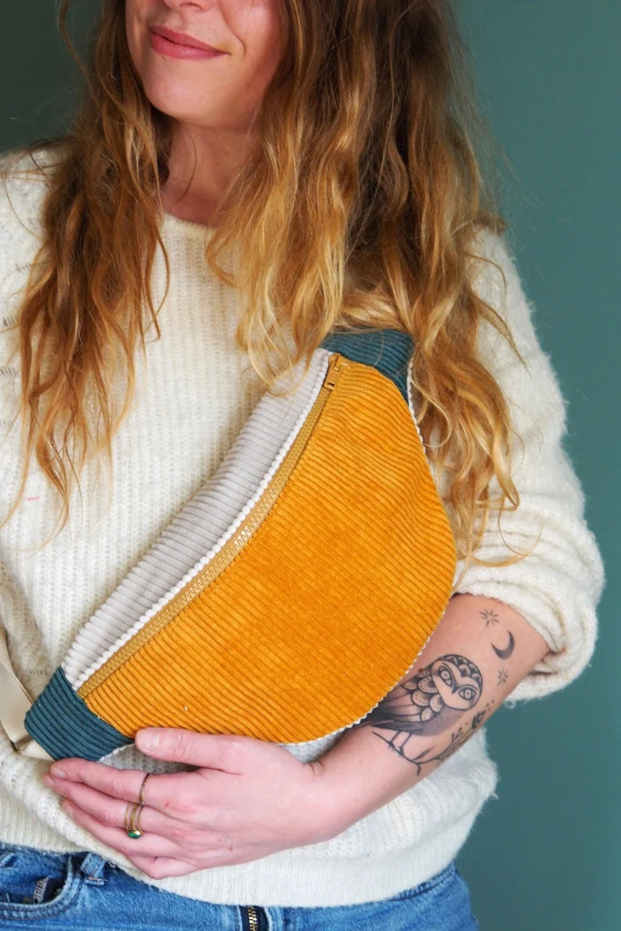 La banane velours Mimosa est une pièce unique cousue main dans mon atelier en Bretagne.
