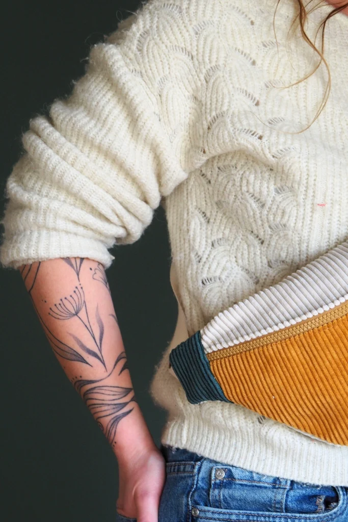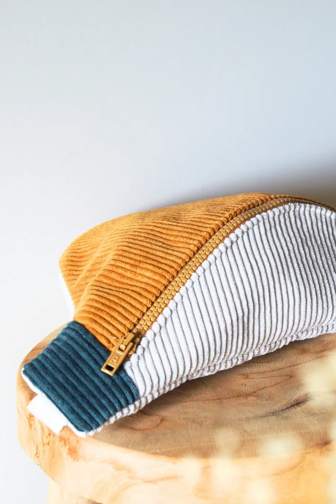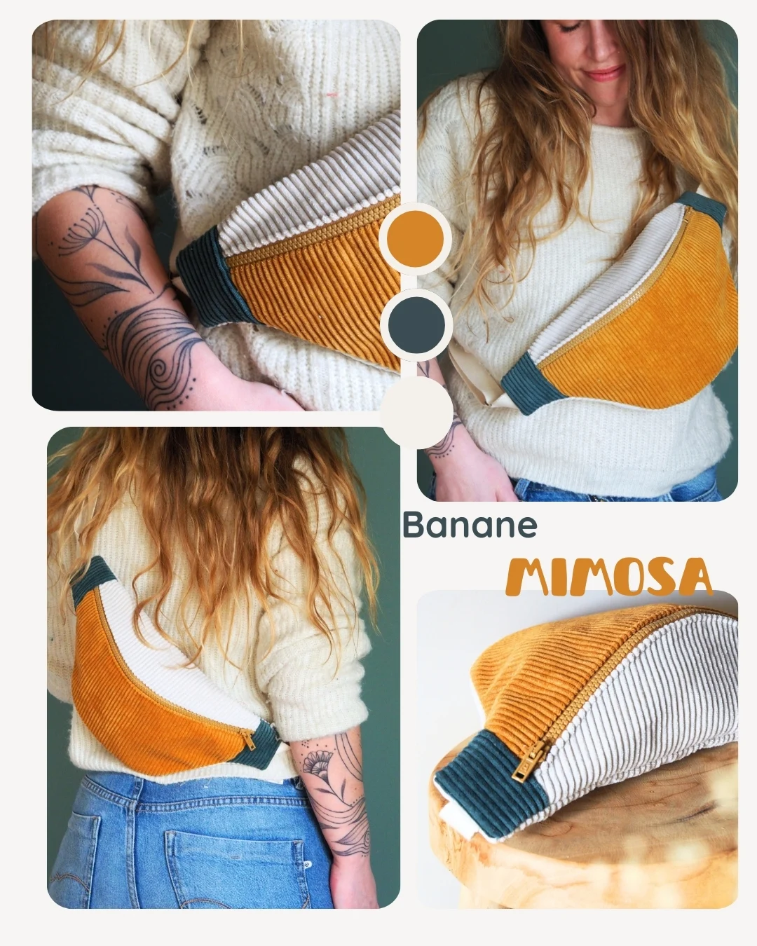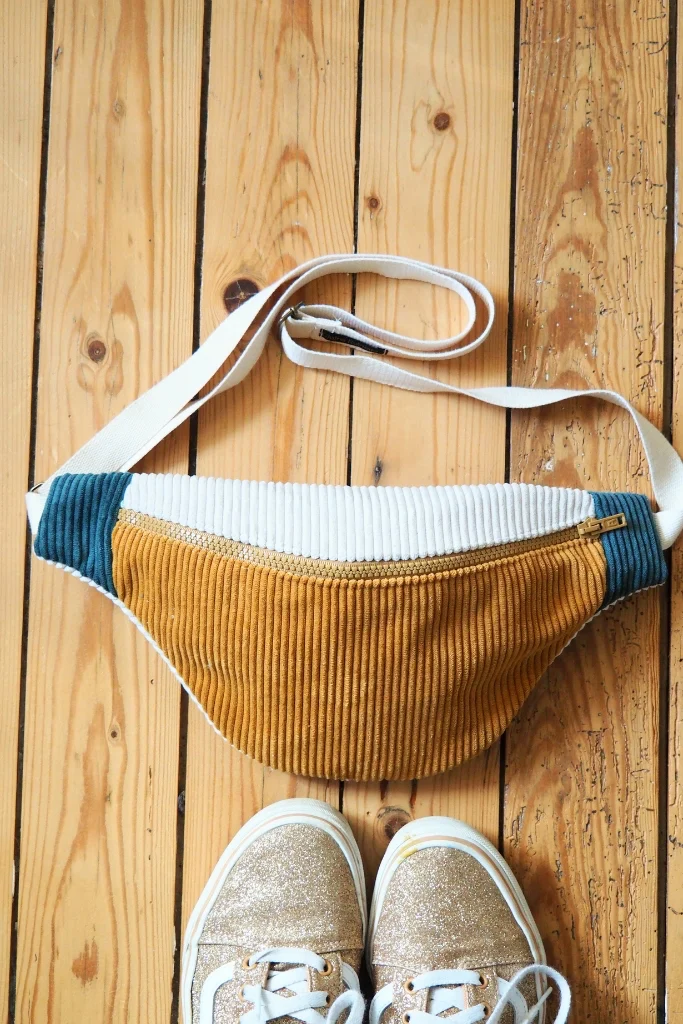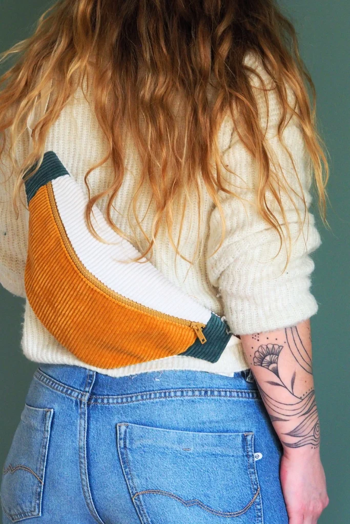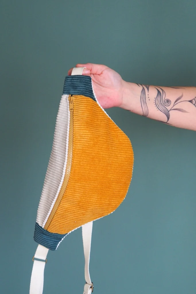 La banane velours Mimosa est une pièce unique cousue main dans mon atelier en Bretagne.