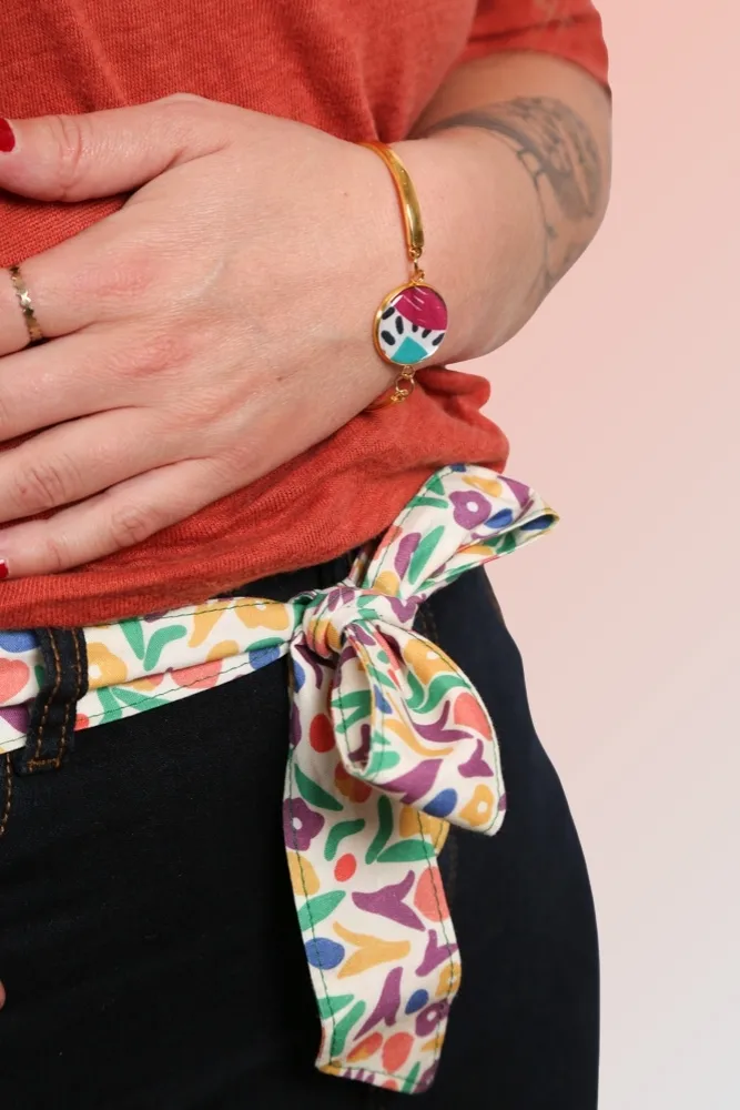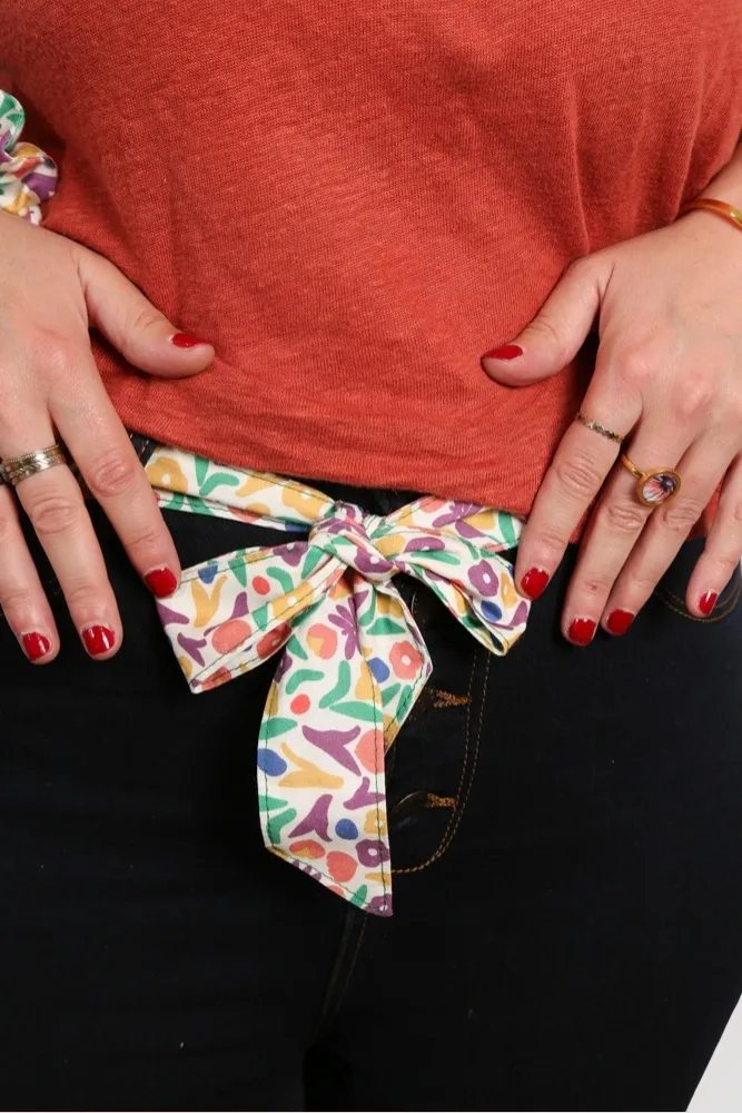 La ceinture Les Fleurs illumine ton look avec son tissu fleuri multicolore pétillant.