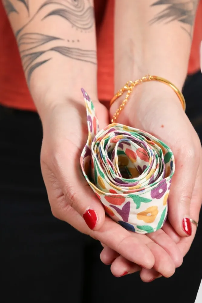 Grâce à sa matière souple et à sa longueur idéale, la ceinture Les Fleurs convient à toutes les morphologies.