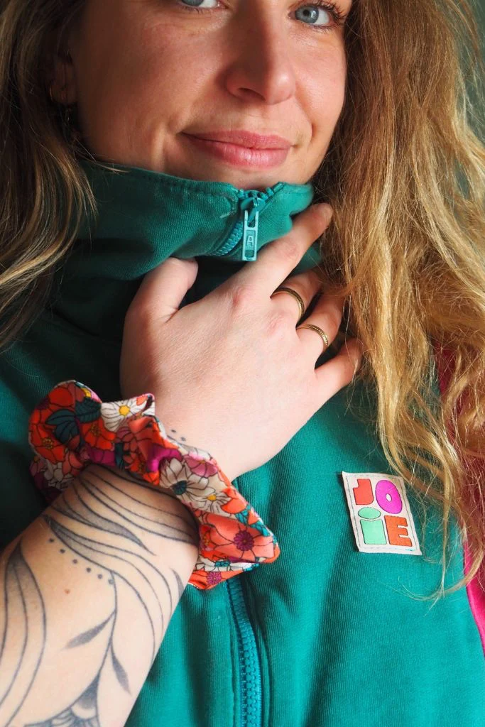 Avec son tissu fleuri rétro aux tons corail, rose, orange et turquoise, il apporte douceur, style et bonne humeur à ton quotidien.À porter :