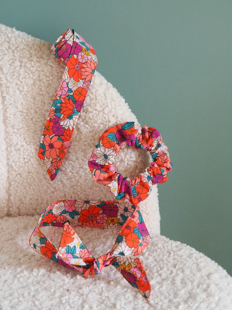 Chouchou cheveux fait main Luz – accessoire fleuri en tissu coloré